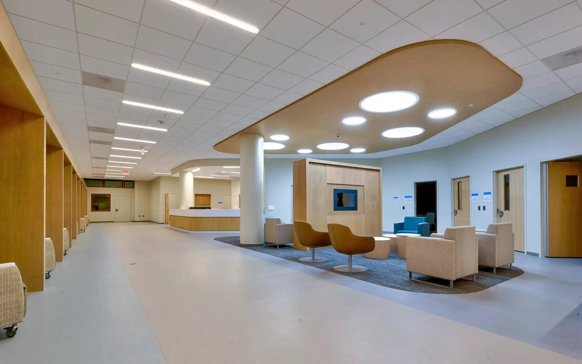 The Lorain County Crisis Receiving Center, a two-story, slab-on-grade 25,000 SF structure serving those experiencing a mental health or addiction crisis to access services. The building will offer 32 beds, 16 for those struggling with mental health issues and 16 for those struggling with addiction.
